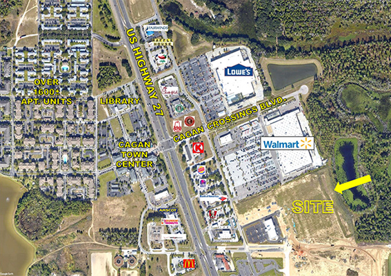 Across the street are over 1900± apartment units. Located north of the Wal-Mart and Lowes, 825 vacation rentals are planned.