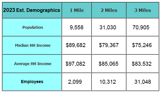 This property is located in a strong residential growth area that includes single family, condo, townhomes and apartment projects. The trade area north of the Property has a high daytime population due to several large industrial parks in the nearby area.