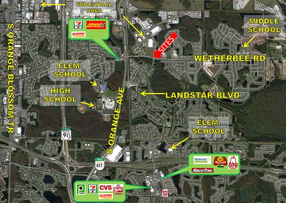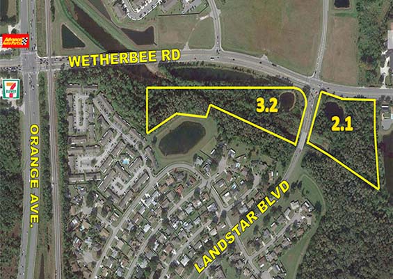 Vacant outparcels located on Wetherbee Road, just east of Orange Avenue, at the northern entrance of Meadowoods, a Landstar Development.