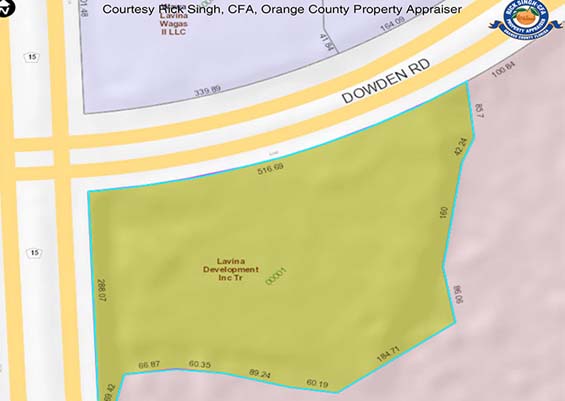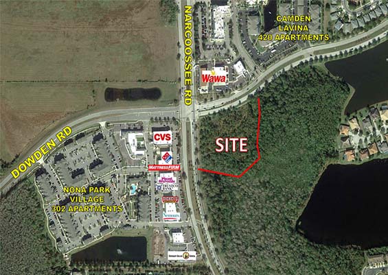Vacant parcel located at the southeast corner of Narcoossee Road and Dowden Road, at the north end to the Lake Nona trade area. Dowden Road is a connector between Narcoossee Road and State Road 417, providing easy access to the Central Florida Greenway (State Road 417) and the Beachline (State Road 528).
