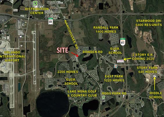 Located just east of this location at State Road 417, Orlando Health just announced that they will be developing a new two-story 44,000 SF freestanding emergency room, to be completed in 2020 with future expansion space. Phase I will include up to 24 treatment rooms, a lab, an imaging department, ambulance bays and a helipad along with parking and supporting infrastructure.